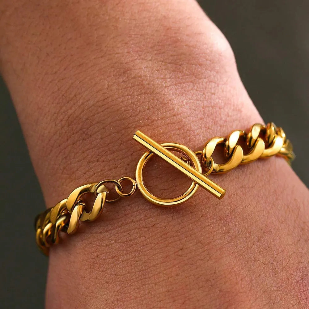 No logos, no gimmicks—just pure titanium gold. This sleek loop chain is the ultimate shape-shifter: dress it solo for boardroom stealth, stack five for concert-night swagger.